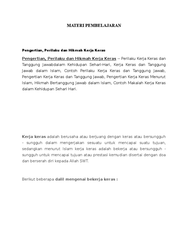 Contoh Perilaku Kerja Keras Dan Bertanggung Jawab Cute766 from i0.wp.com Dedikasi dan kerja keras adalah prinsip yang selalu saya pegang teguh. Kerja keras sering dianggap sebagai kunci untuk menggapai kesuksesan atau keinginan kita. Ini mencakup pengertian bahwa bekerja adalah pengeluaran energi untuk kegiatan yang dibutuhkan oleh karyawan supaya mencapai tujuan tertentu. Unduh dan gunakan 10.000+ foto stok kerja keras secara gratis. Maka kerja keras dapat diartikan sebagai tindakan yang pantang mundur atau pantang menyerah, tak mengeluh, sampai kita mengapai kesuksesan. Contoh kerja keras yaitu selalu bersemangat dalam mencapai apapun yg diinginkannyawalaupun waktunya sgt lama. Sebagai contoh, jika kita sudah bekerja keras dalam belajar untuk ujian matematika, ternyata hasil yang didapatkan kurang memuaskan, maka sikap kita seharusnya bisa menerimanya dan berusaha lebih keras lagi pada ujian selanjutnya. Contoh lain dari kerja keras dapat ditemukan dalam uraian berikut.